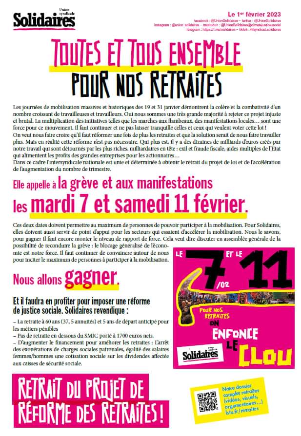 đ On continue cette formidable mobilisation les 7 et 11 fĂ©vrier, en grĂšves et manifestations !