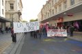 Malgré une pluie battante, le froid et le vent, les manifestant(e)s se sont dirigés vers la préfecture, où ils ont brulé le texte de loi sur la réforme des retraites puis devant le MEDEF où ils ont balancé les dizaines de cercueils de nos morts au travail..