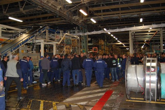 Tôt ce matin, AG dans les ateliers de l’usine.