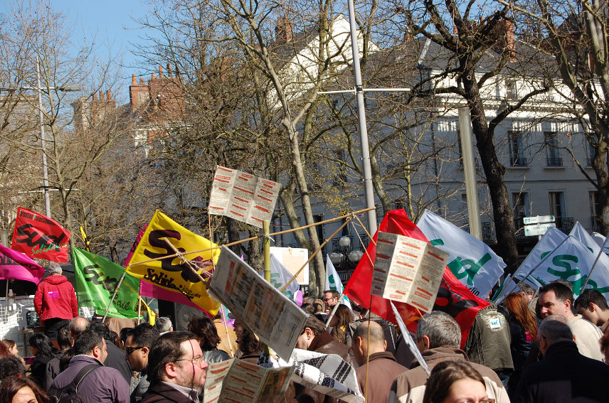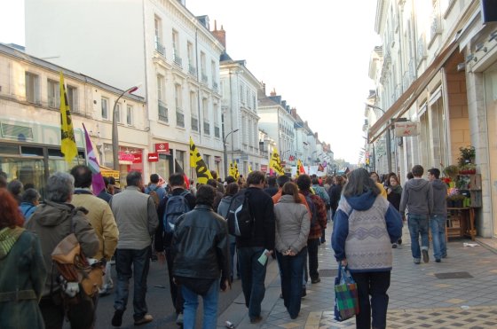 Parti de la place Jean-Jaurès, le cortège d’hier a cheminé vers le carrefour des Français-Libres, à l’entrée de Saint-Pierre-des-Corps, avant de revenir par le Boulevard Heurteloup vers 19 h 30. Ce qui ne fut pas sans embouteillages.