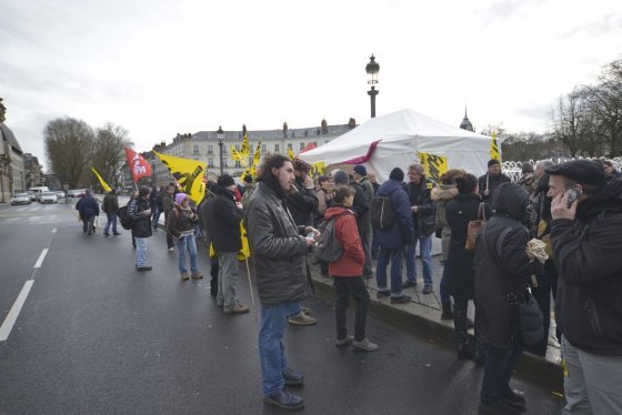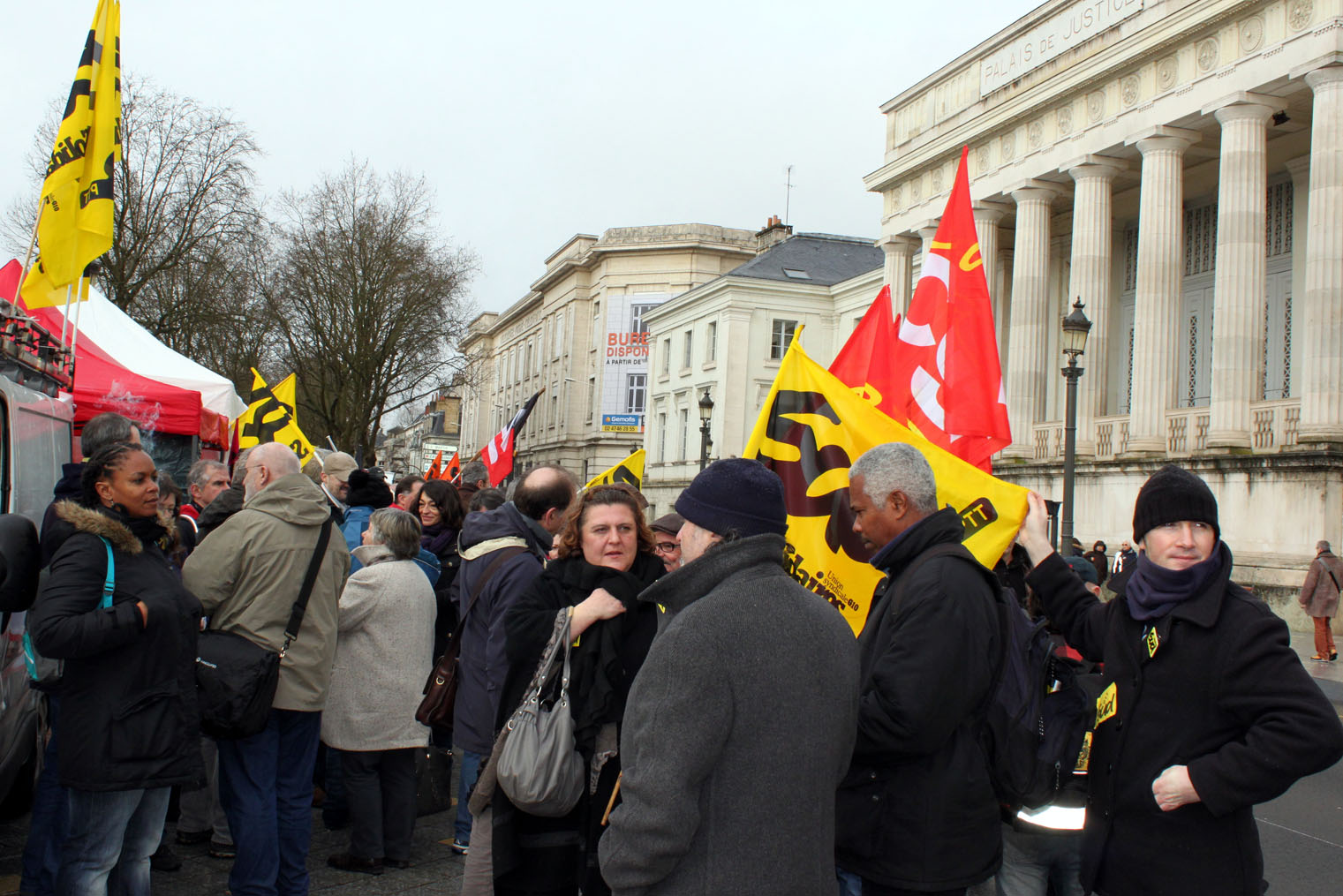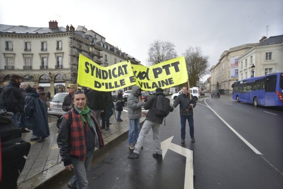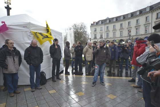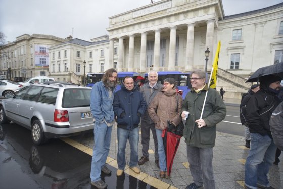 En grève puisqu’un préavis national a été déposé, des personnes venues de plusieurs départements étaient venues soutenir le syndicat et la liberté d’expression dans un tract. En juillet 2011, le syndicat avait écrit des qualificatifs pas appréciés du directeur du courrier de la Poste. Une perquisition dans le local syndical de Sud PTT avait suivi. « Nous tombons des nues, cela fait trois ans que la plaisanterie dure. La justice bourgeoise ne peut pas juger l’affaire le jour prévu. On rit jaune », regrette Eric Sionneau, de Sud PTT. Un nouveau rassemblement aura lieu le 24 avril.