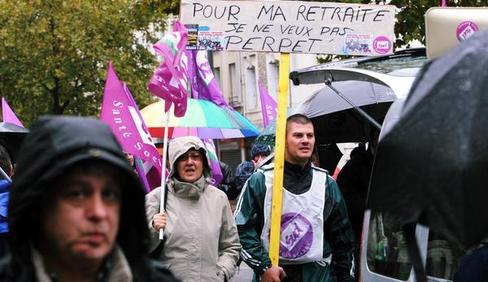 Faible mobilisation sous une pluie continue contre la réforme des retraites de Hollande/Fillon.