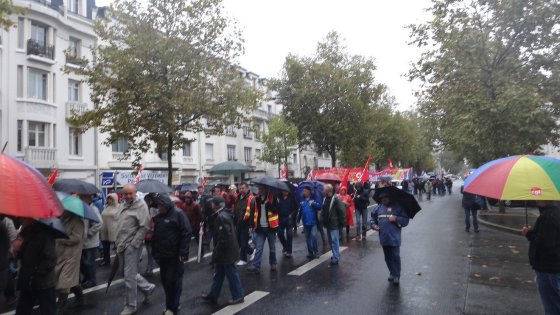 Les manifestants ont défilé en ville, ce matin, sous la pluie - photo NR, Patrice Deschamps