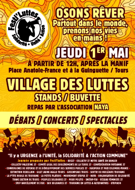 1er mai, c’est parti ! Manif intersyndicale 10h place de la liberté puis Festiluttes 12h place Anatole France et guinguette de Tours