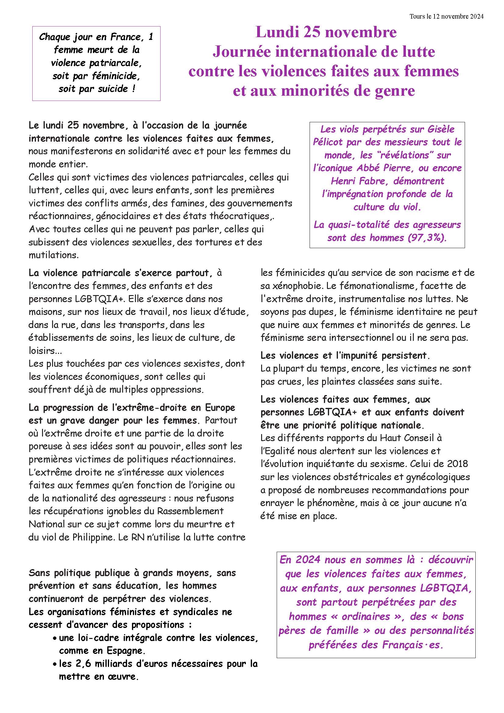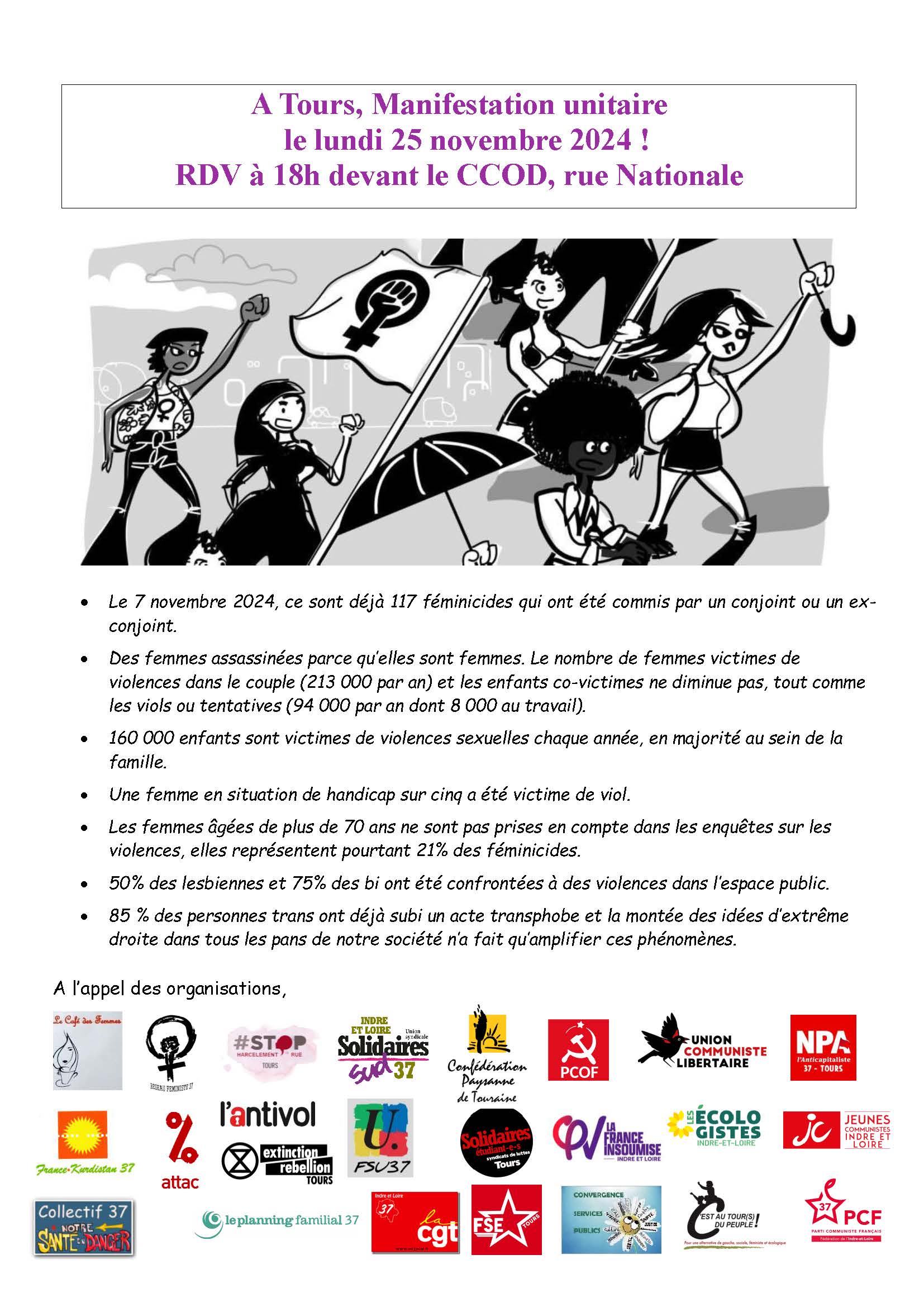 25 novembre, journée internationale de luttes contre les violences sexistes et sexuelles, rdv 18h devant le CCCOD rue Nationale à Tours