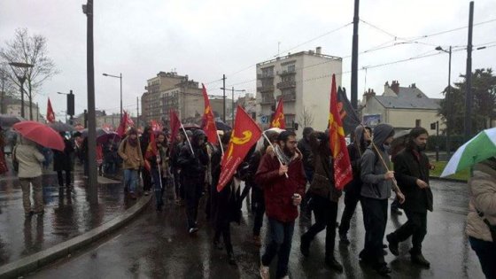 L’état d’urgence, on n’en veut pas, ont scandé les manifestants, partis à 15 h de la place de la Liberté, armés de leurs parapluies. Sous une pluie battante, le cortège s’est dirigé vers le quartier du Sanitas, puis rue Blaise-Pascal pour rejoindre finalement la préfecture et non la rue Nationale comme initialement prévu.