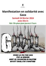 Prochaine manifestation de soutien à la Palestine samedi 3 février 15h place de la Liberté à Tours