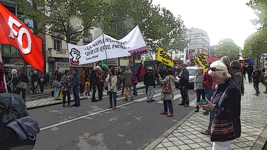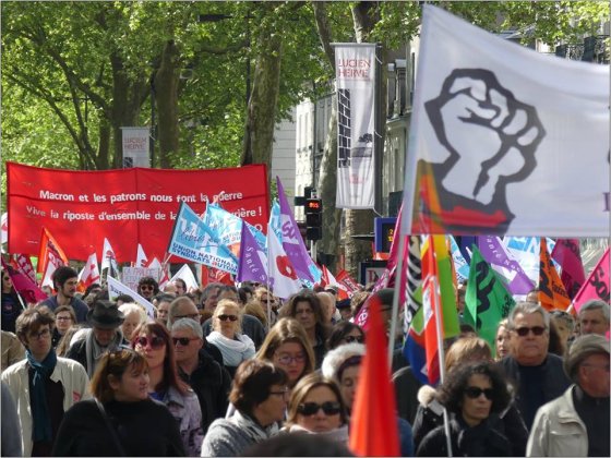 650 CGT, 350 SUD/SOLIDAIRES, 250 FO, 10 UNSA, 5 ou 6 FSU, 5 ou 6 CFDT, 300 LO, PCF, FI, NPA, PS, Verts, ATTAC, LDH, AL, NDDL et quelques dizaines d’étudiant-e-s.