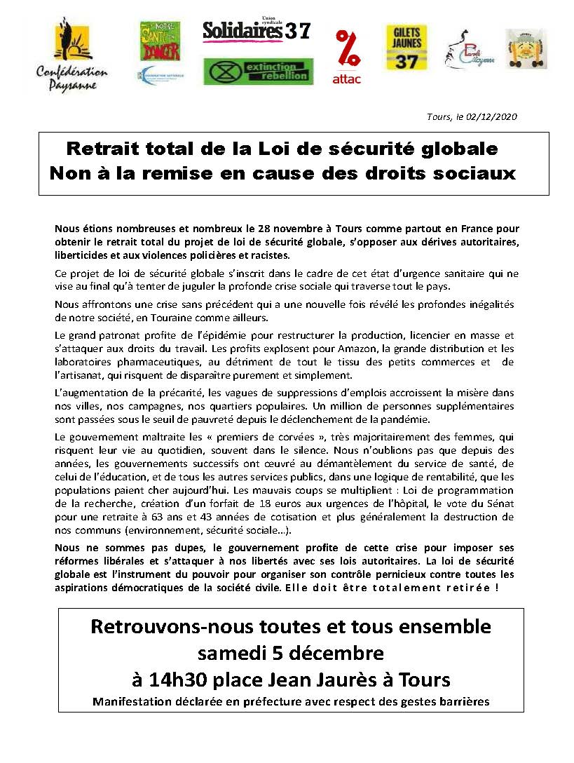 Retrait total de la Loi de sécurité globale Non à la remise en cause des droits sociaux