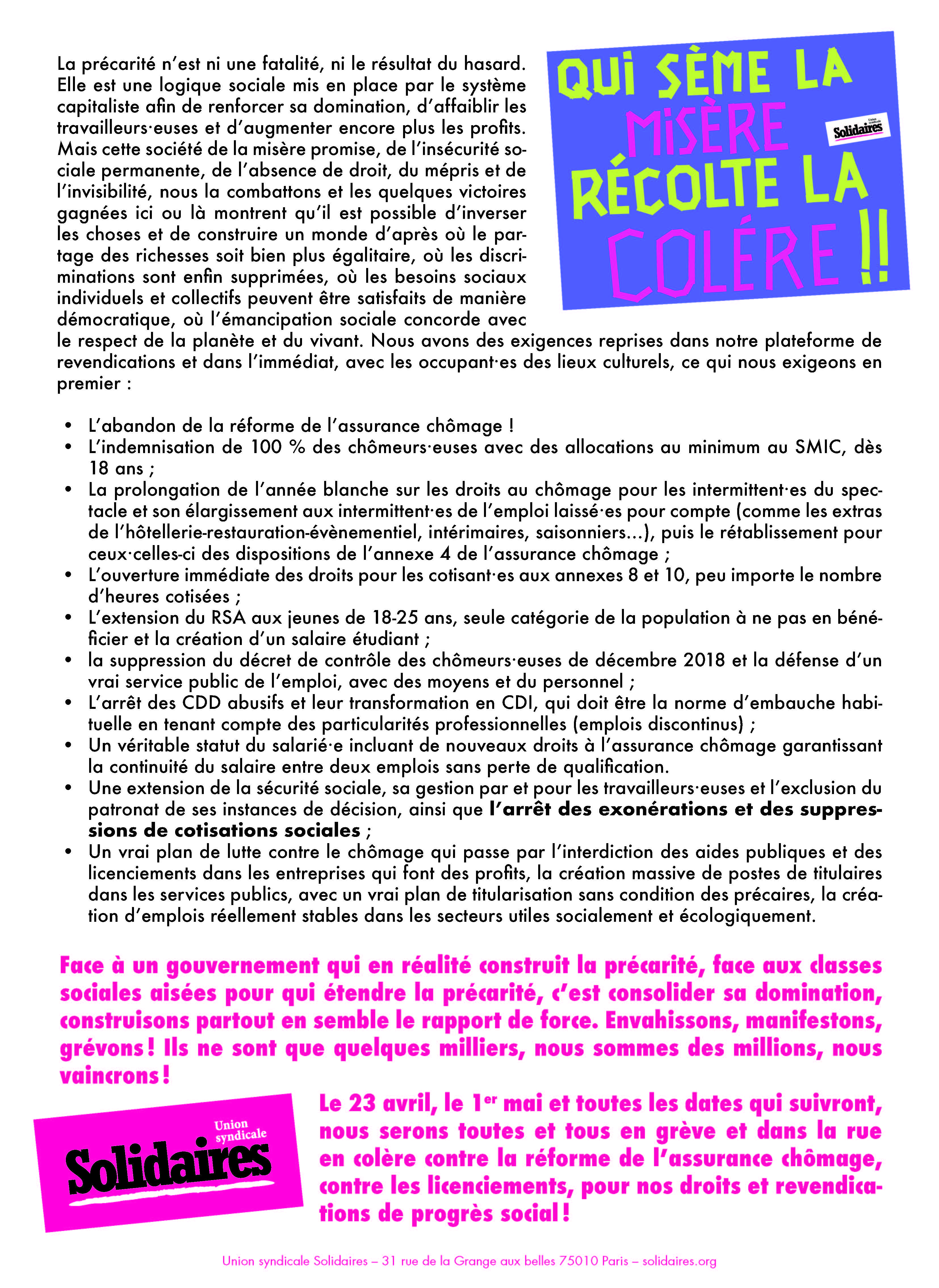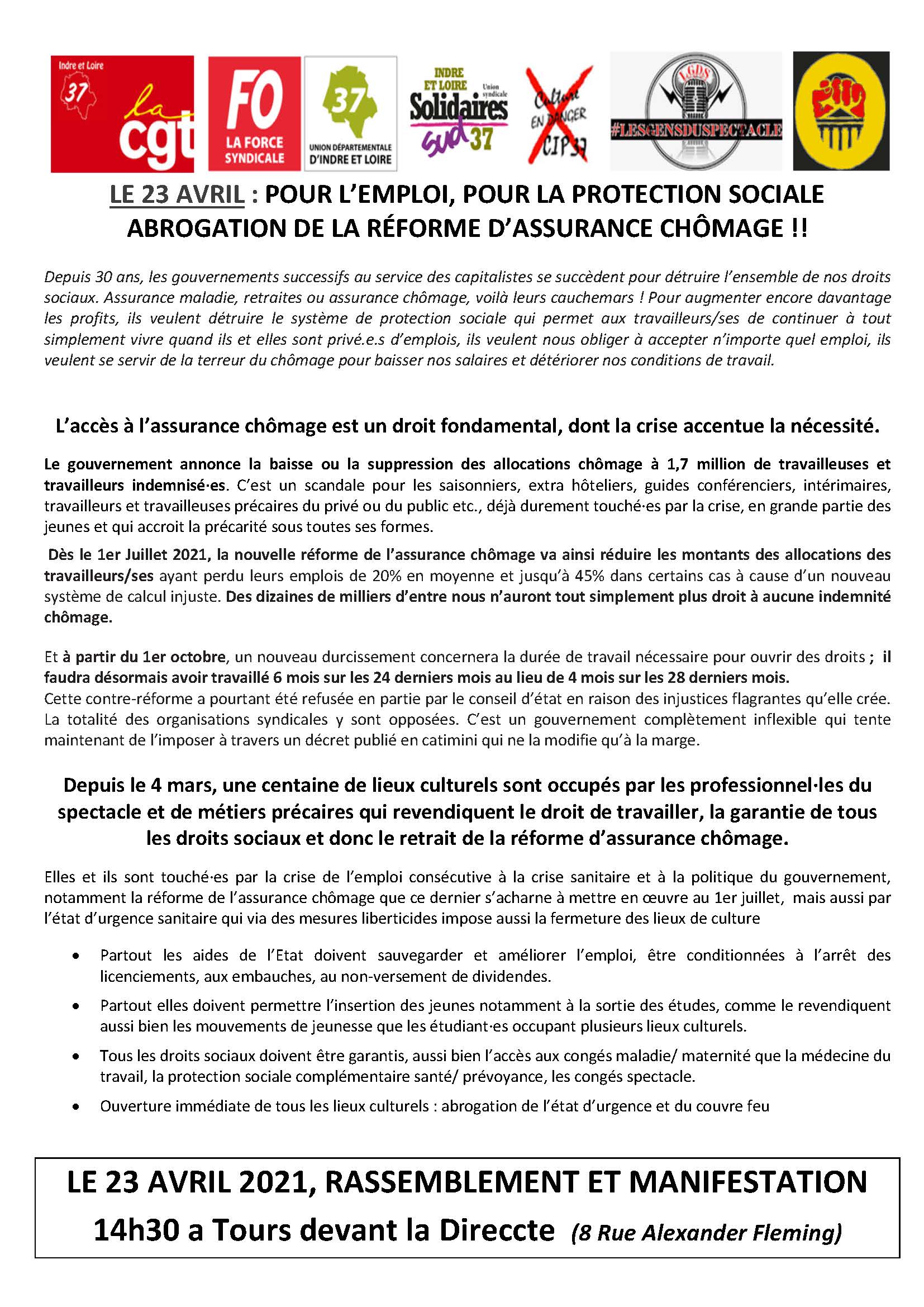 C’EST LE CHÔMAGE ET LA PRÉCARITÉ QU’IL FAUT COMBATTRE PAS LES CHÔMEURS•EUSES ET LES PRÉCAIRES ! RDV le vendredi 23 avril à 14h30 devant la Direccte, rue Flemming, Tours