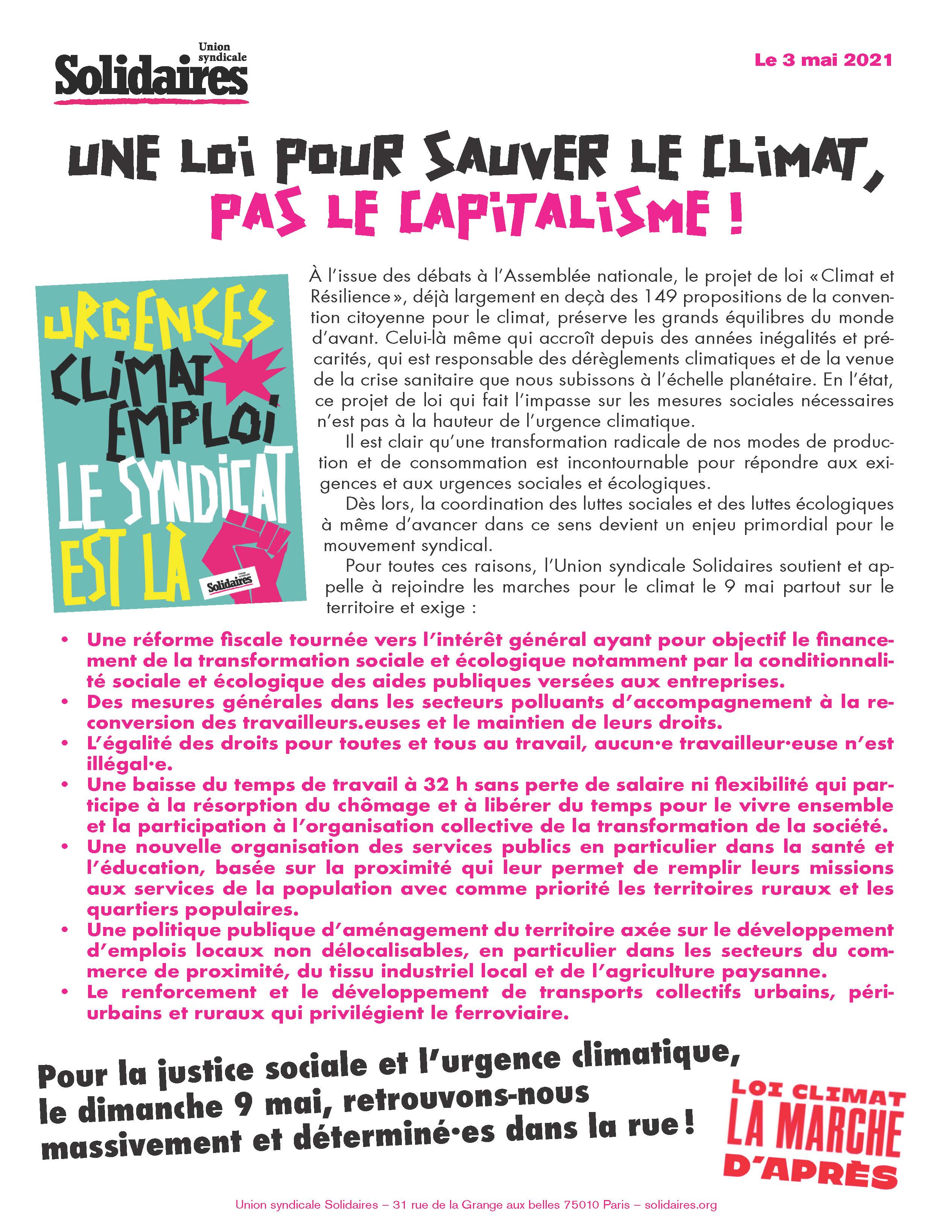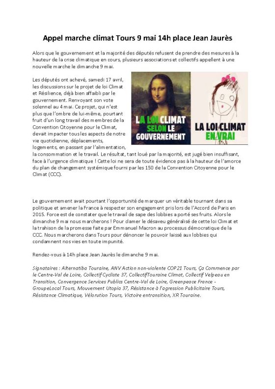 Changeons le système, pas le climat ! Rdv à la marche climat dimanche 9 mai à 14h place Jean Jaurès à Tours !