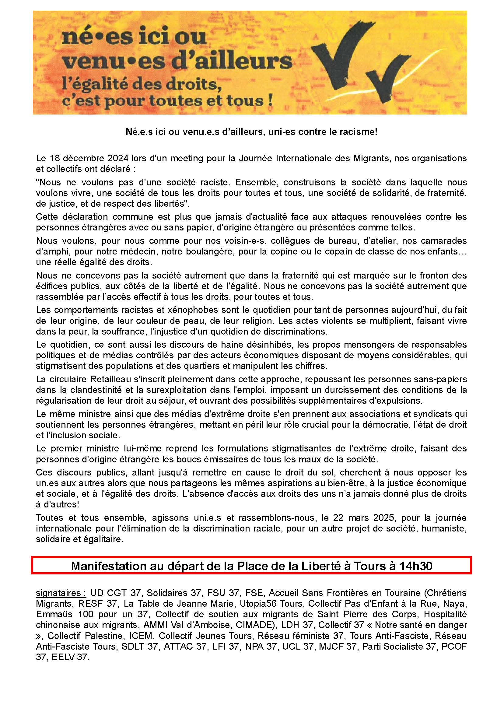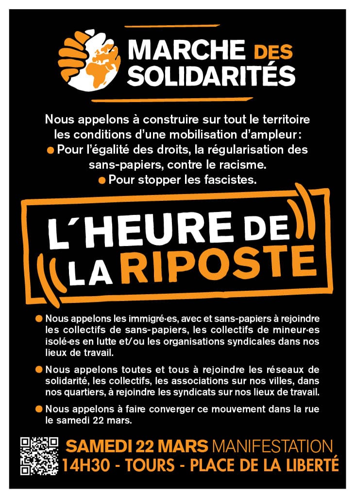 Contre le racisme, contre le fascisme, c’est l’heure de la riposte ! Manifestation unitaire à 14h30 place de la liberté à Tours samedi 22 mars