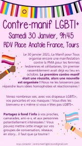 Contre-manifestation LGBTI+ à 9h45, samedi 30 janvier, place Anatole France.