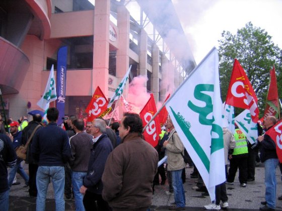 La section syndicale SUD Michelin de Tours a organisé un départ pour participé à une action devant la salle de réunion des actionnaires à Clermont Ferrant (seule organisation syndicale car la cgt, cftc , cgc et fo n’ont pas souhaité nous accompagner).