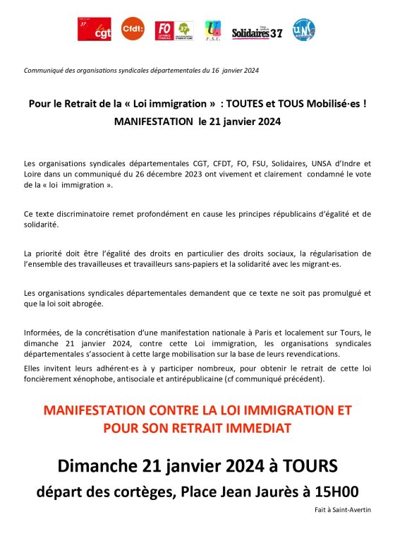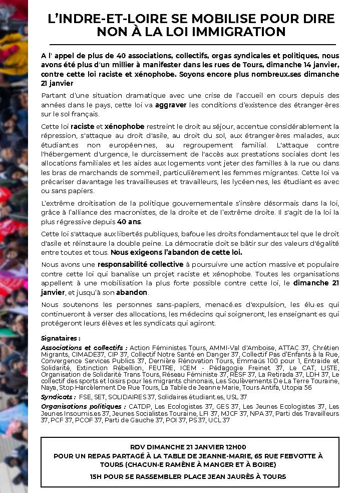 Dimanche 21 janvier, toutes et tous mobilisé·es contre la Loi Immigration