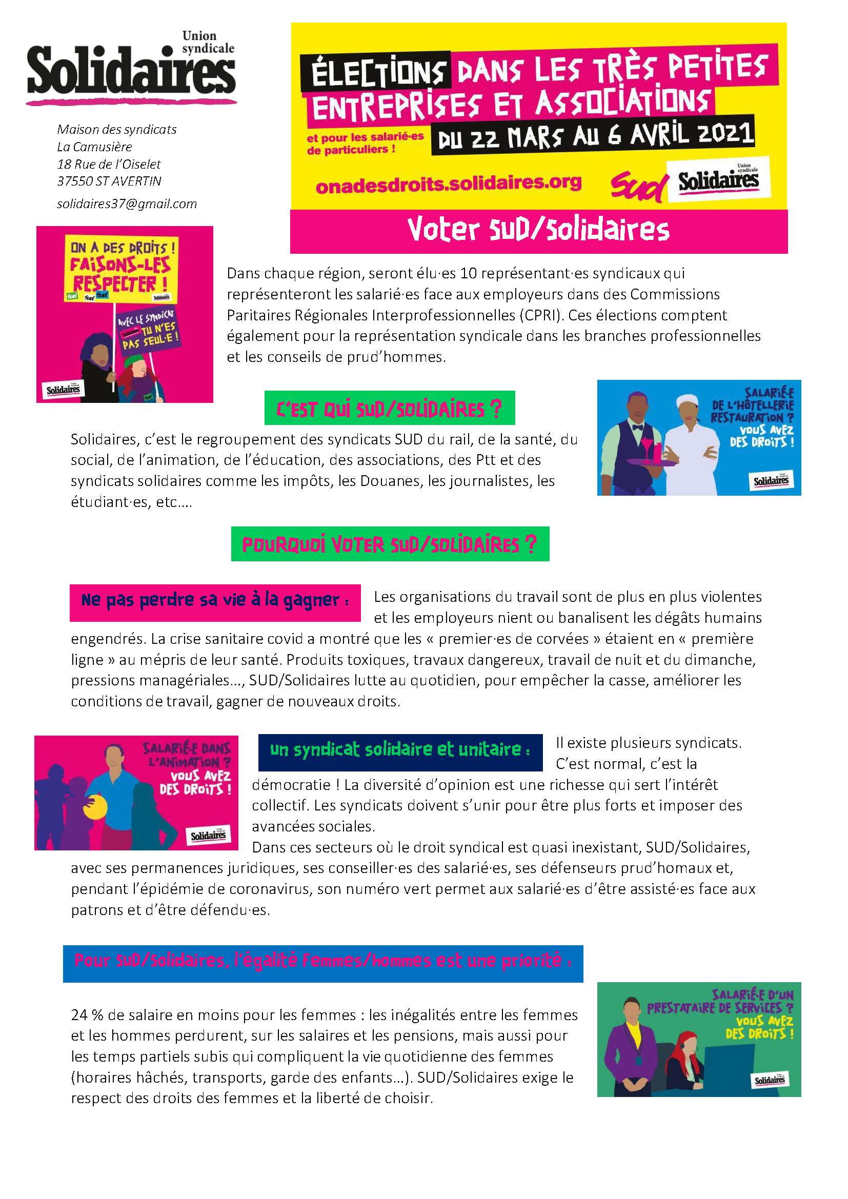 Election Trés Petites Entreprises et Associations du 22 mars au 6 avril. Votons Solidaires pour défendre nos droits !