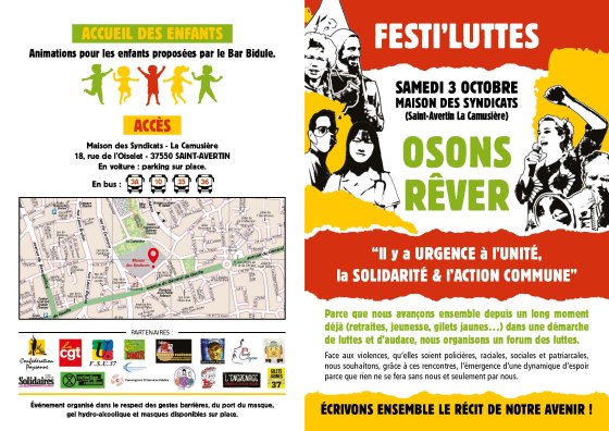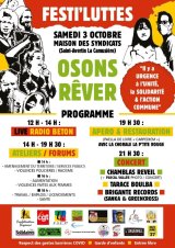 Festi’luttes, samedi 3 octobre, à partir de 13h, maison des syndicats à la camusière, St Avertin.