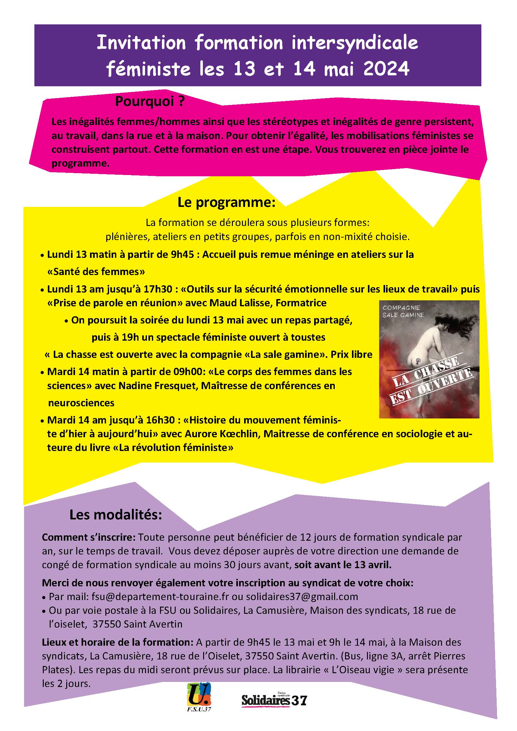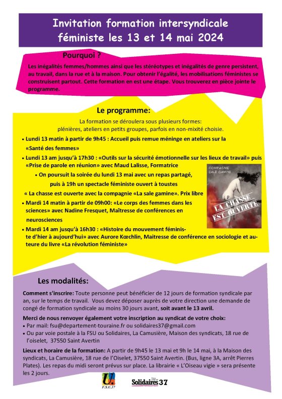 Formation intersyndicale féministe les 13 et 14 mai 2024