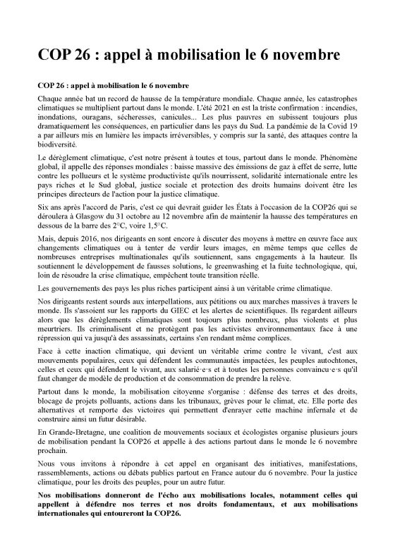 Appel ANV-COP21, Alternatiba et XR Touraine ici : https://fb.me/e/Z9ToBd3P et appel national unitaire ci-dessous