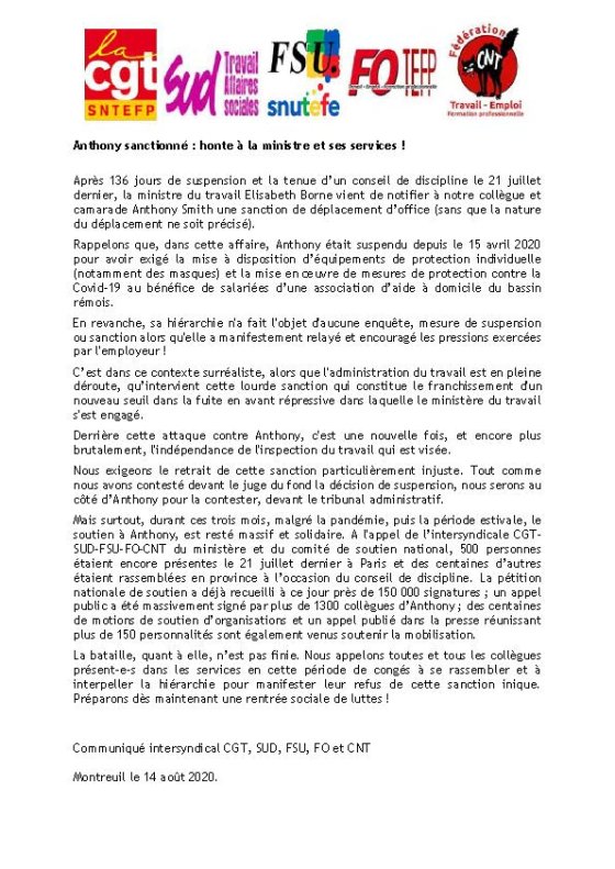 communiqué unitaire ci-joint et ci-dessous