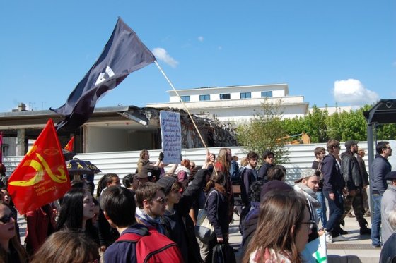 Mais on notait également la présence de drapeaux d’organisations politiques : le NPA, Lutte Ouvrière, le Parti de Gauche et les Jeunesses communistes. Et un drapeau original : celui de l’Union syndicale des travailleurs kanaks et exploités.