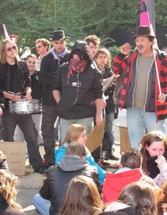 Cette fois, les jeunes se sont rassemblés place Jeanne-d’Arc. Ils étaient accompagnés par une dizaine d’adultes, des militants Sud pour la plupart (notamment du centre hospitalier du Chinonais). Là, Jean-François (Sud santés sociaux) leur a adressé quelques mots : « Il faut ramener l’être humain au centre de société. Il faut créer un monde différent où le fric ne serait pas le plus important. »