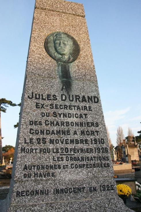 La semaine prochaine s’annonce encore animée au Havre. Deux jours après la manif du 23 novembre, l’intersyndicale CGT-CFDT-FSU-Solidaires épaulée par le Syndicat de la magistrature et le Syndicat des avocats de France rendront hommage à Jules Durand dans le cadre du centenaire du verdict immonde qui avait condamné à mort le syndicaliste révolutionnaire en 1910.