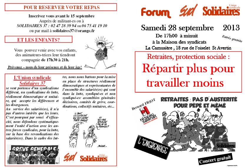 Le 28 septembre 2013 : Le forum de SOLIDAIRES 37.