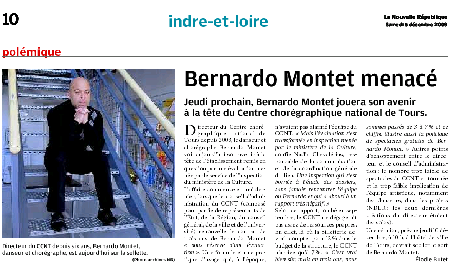 Il semblerait que les financeurs publics aient décidé de mettre fin à la convention qui lie Bernardo Montet au CCNT.