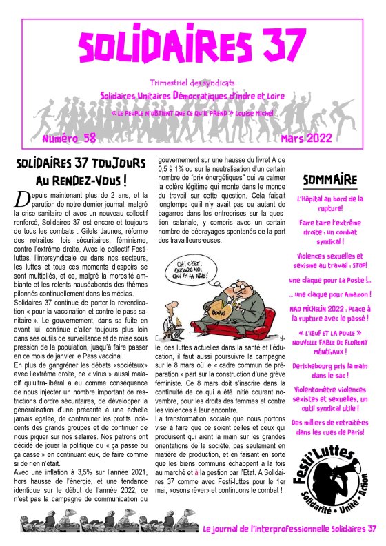 Le nouveau numéro du journal de Solidaires 37 est arrivé !