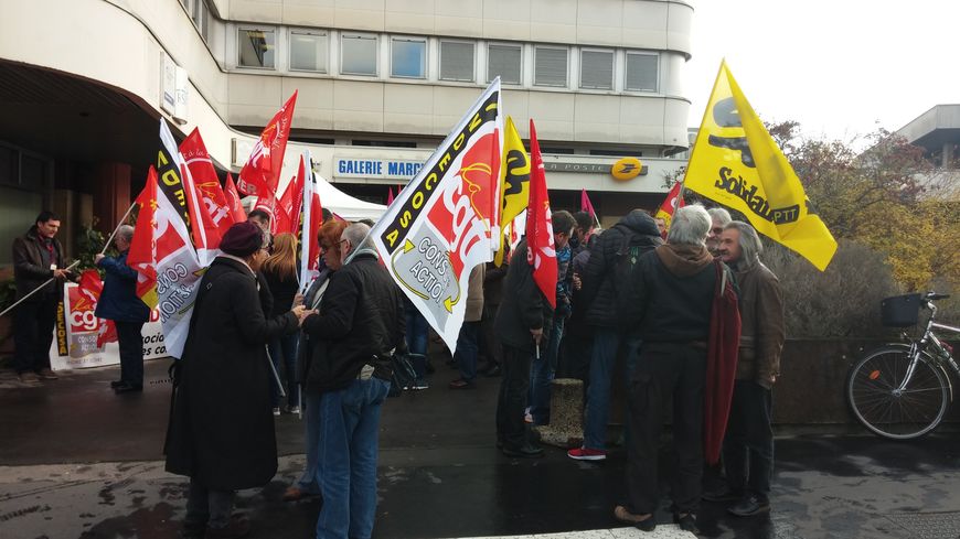 Environ cent cinquante personnes se sont réunies en fin de matinée, à l’appel de la CGT, de Sud et de différentes associations d’usagers devant la direction de la poste à Tours.