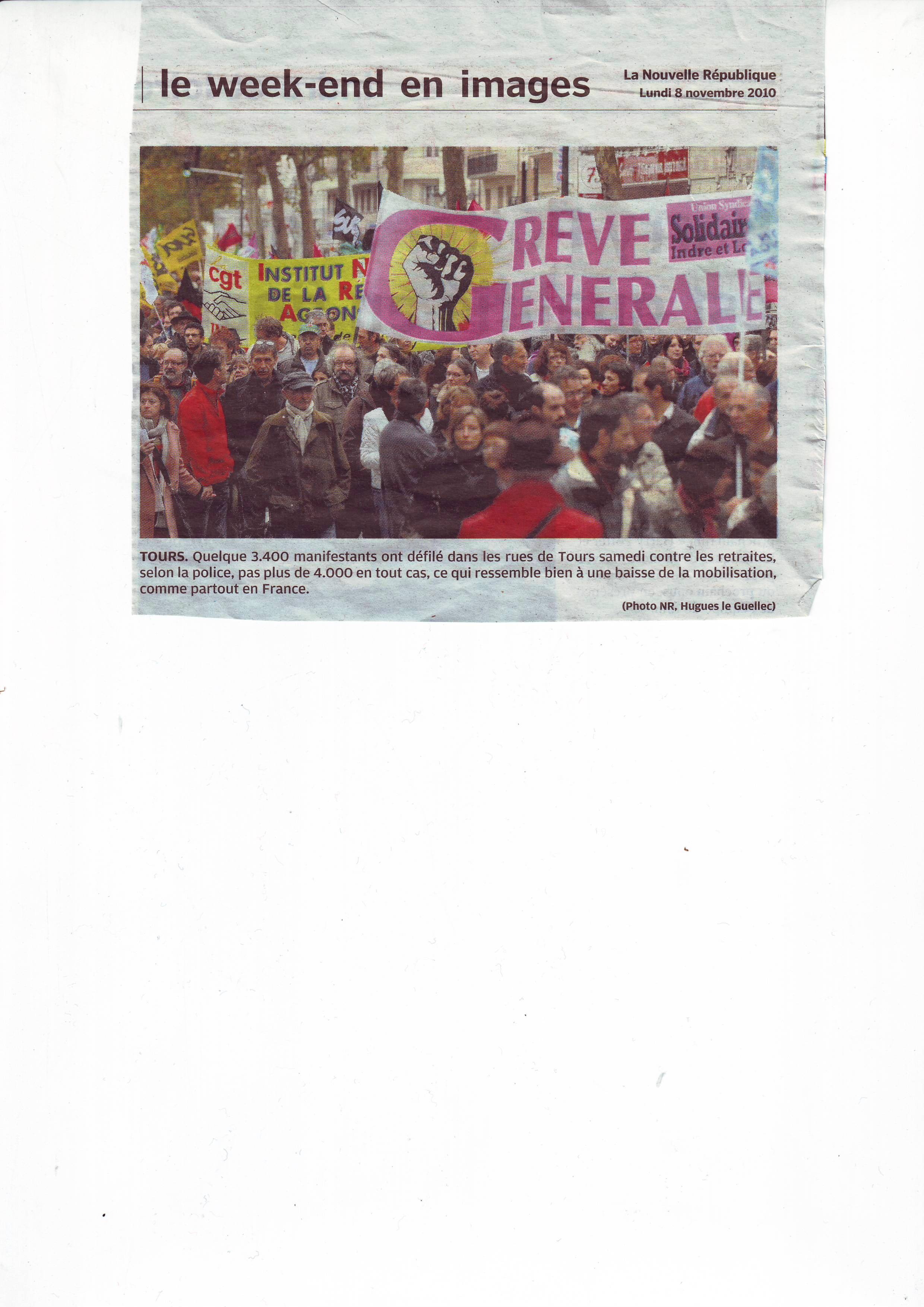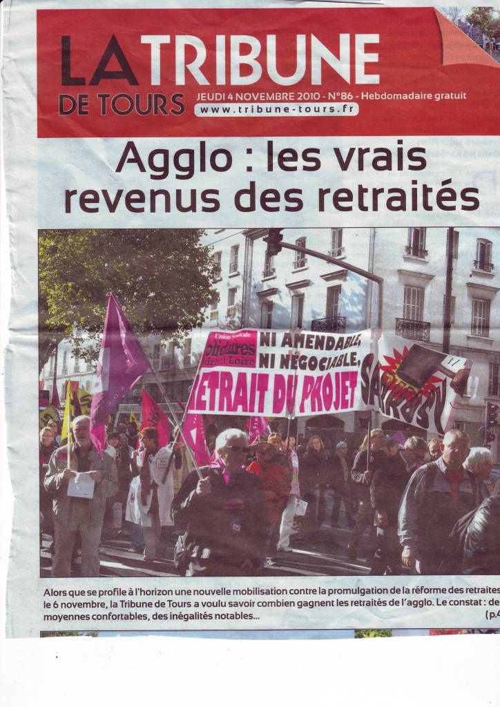 A la une de la NR (8/11/2010) et de « La Tribune de Tours » (4/11/2010).