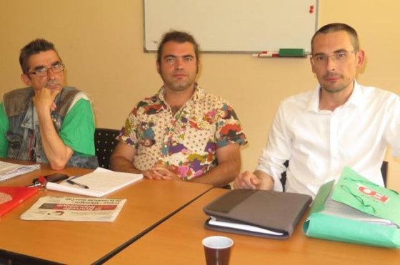 Jean-Luc Firmin (Solidaires), Stéphane Desplobin (CGT) et Grégoire Hamelin (FO). -