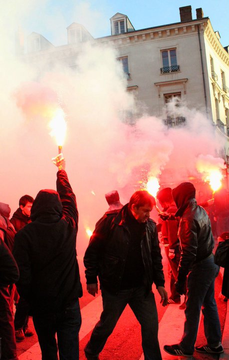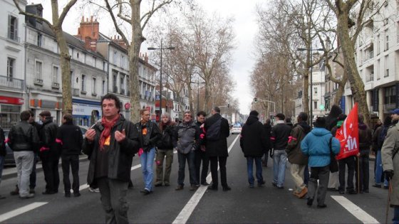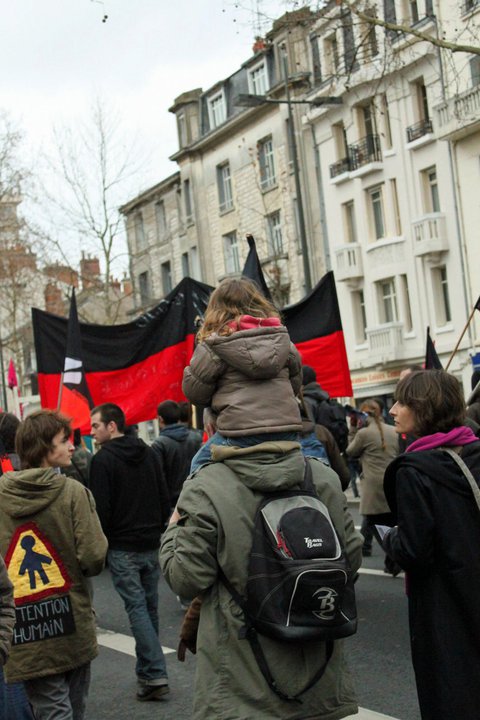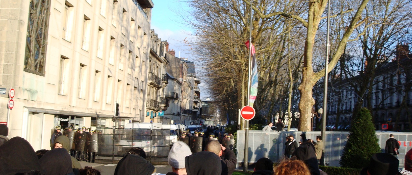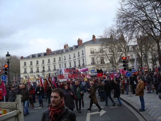 A leurs côtés, des délégations du Parti Socialiste (dont la présidente du conseil général Claude Roiron ou le député Jean-Patrick Gille), mais également des particuliers hésitant sur la place à prendre dans ce cortège rouge et noir. La présence d’une quarantaine de porteurs de capuches, foulards et blousons noirs laissait augurer une radicalisation du mouvement. Le défilé s’est acheminé sans encombre place Jean-Jaurès, sous escorte discrète.