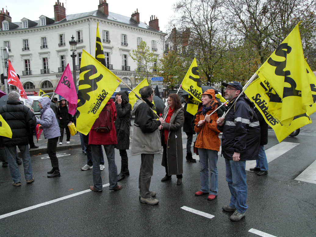 Malgré la floppée d’organisations « de gôche » et d’associations qui appellaient à se rassemblement, peu de monde dans les rues. A peine 200 personnes (et encore)... C’est vrai, il pleuvait.... Mais bon.... La CGT s’est mise à courir à 2 reprises pour se mettre devant SUD.... Les cons... C’est vrai qu’à ce petit jeu là, elle réussit bien... Idem lorsqu’il s’agit de faire capoter l’idée d’une manifestation nationale sur ce sujet là, à Paris, en décembre... Et elle n’est pas la seule...