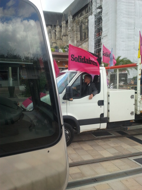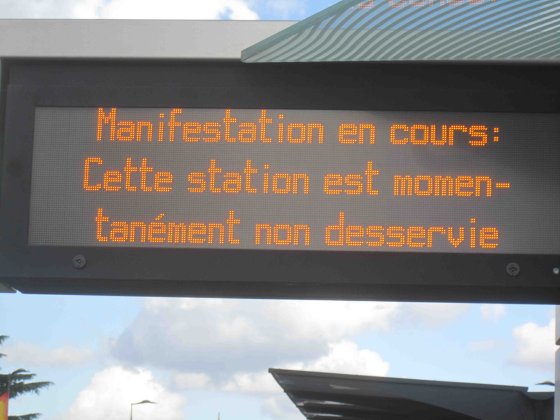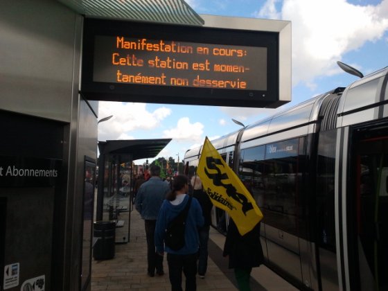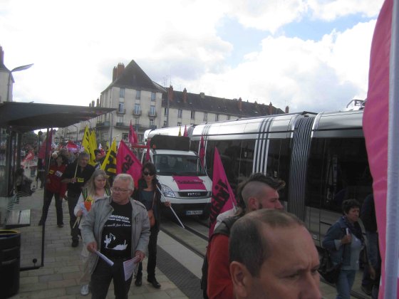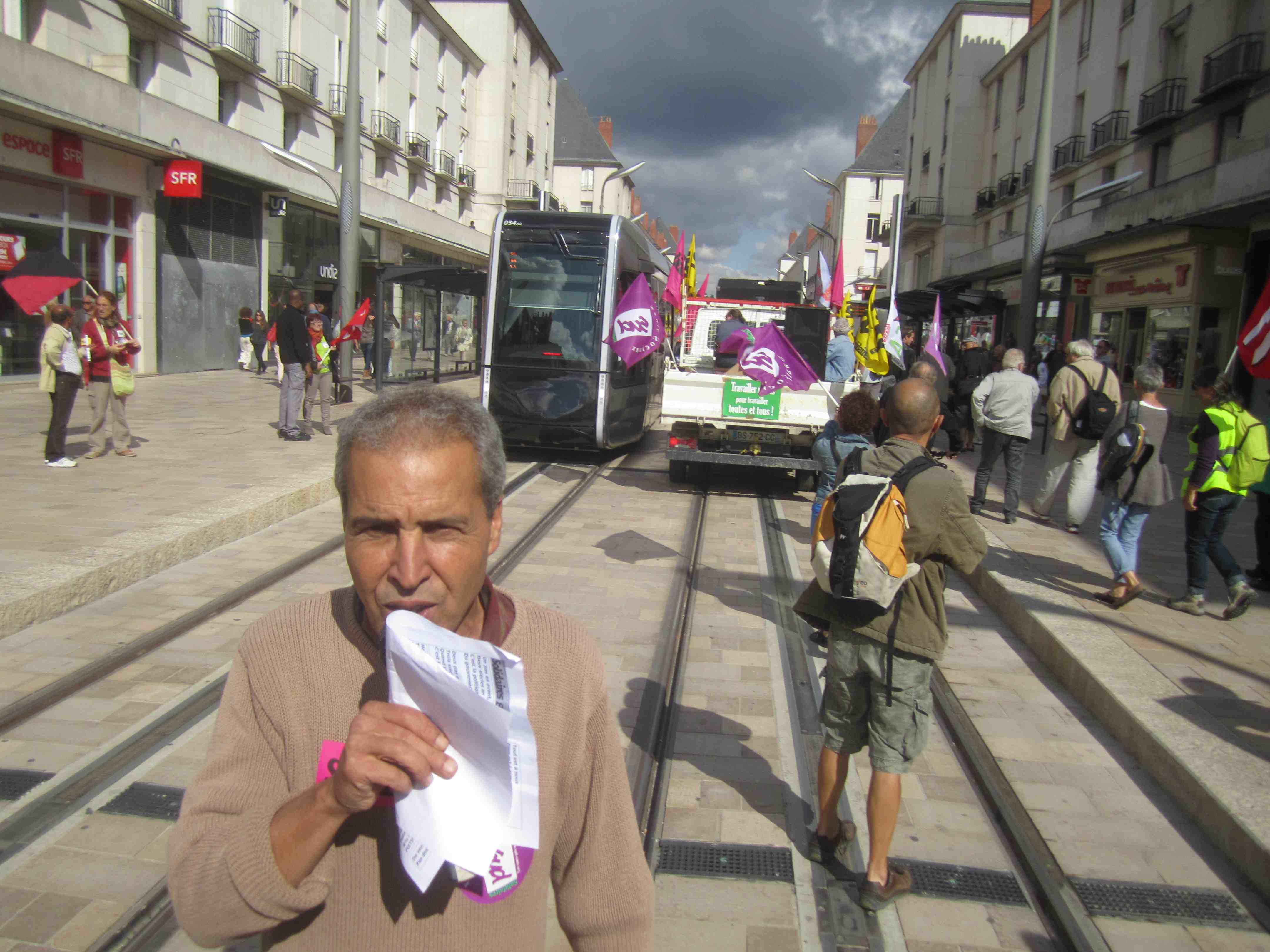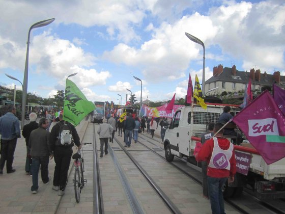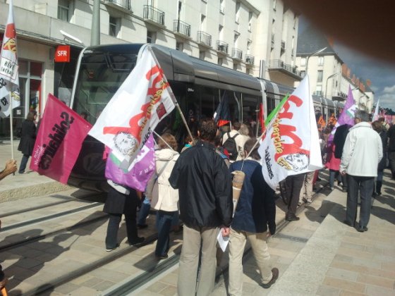 Malgré tous ses efforts, le maire « socialiste » de Tours n’a pas pu empêcher le cortège de défiler sur les voies de « son » tramway...
