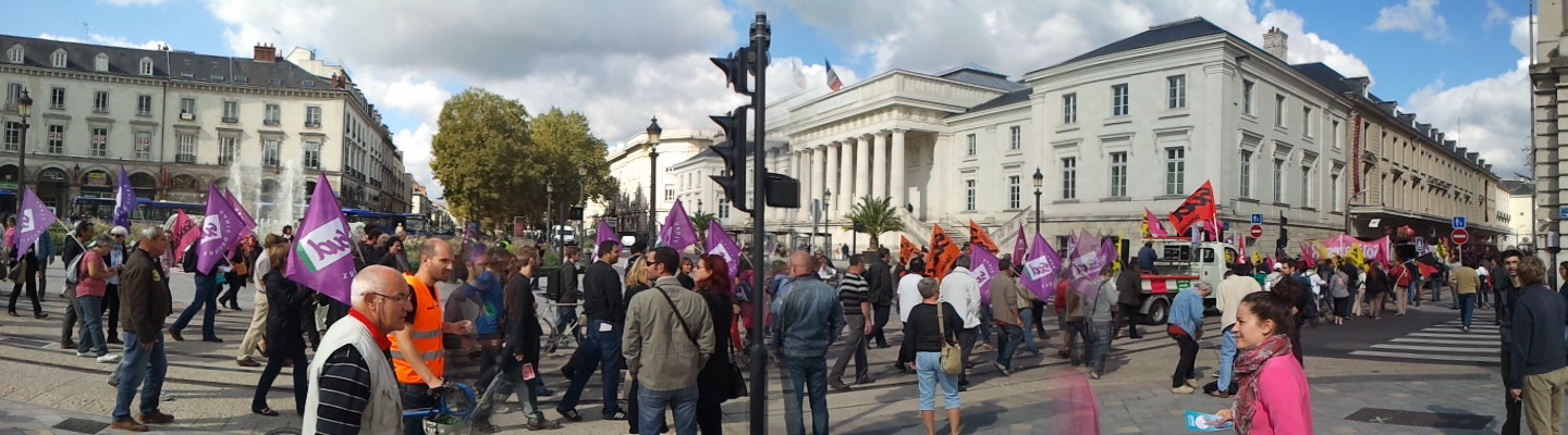 A noter, dans notre cortège, la diversité des nos syndicats représentés : Protection Sociale, Territoriaux, FPA, Santé/Sociaux, Poste, Télécom, Rail, Michelin, Radiall, Effico, Finances publiques, journalistes, Recherche, Culture, Crédit Agricole, Education, etc