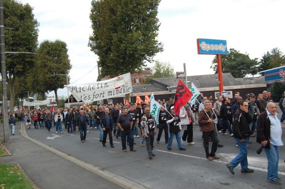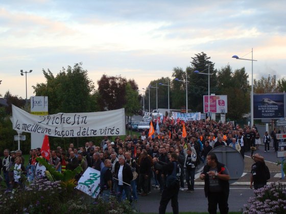 Ce mardi 8 octobre 2013, à 8 heures : usine en grève et grosse manif à Joué les Tours (environ 1500 personnes) sous fond de trahison des élus et mépris de la direction du groupe Michelin.