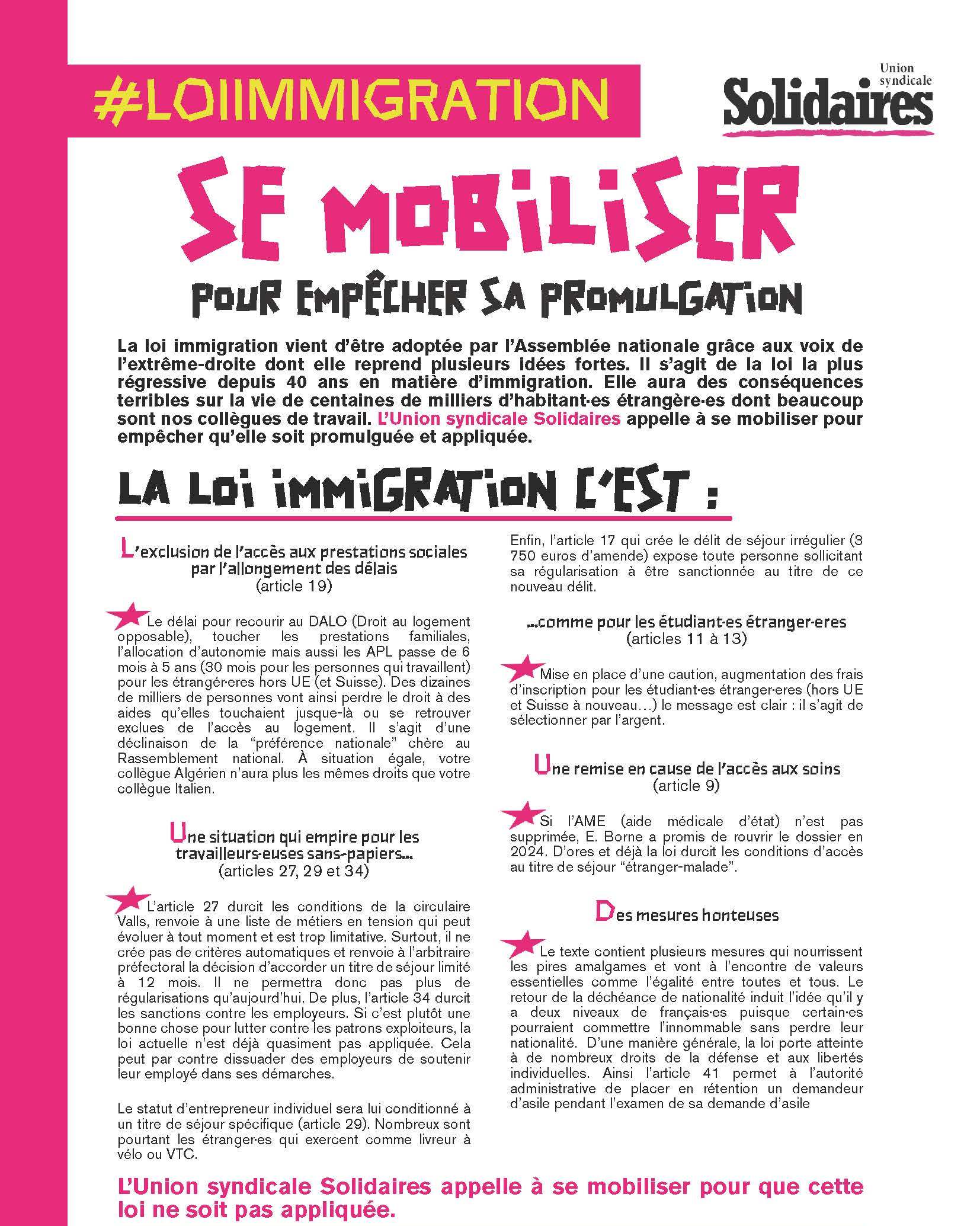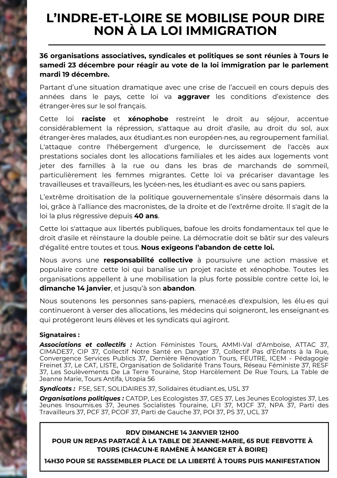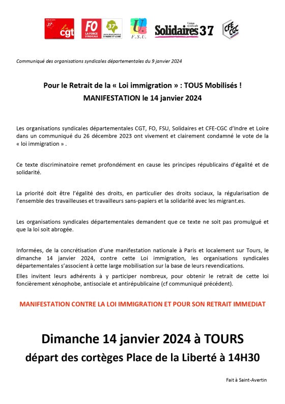 Non à la loi raciste et xénophobe Darmanin ! Toutes et tous mobilisé·es le 14 janvier !