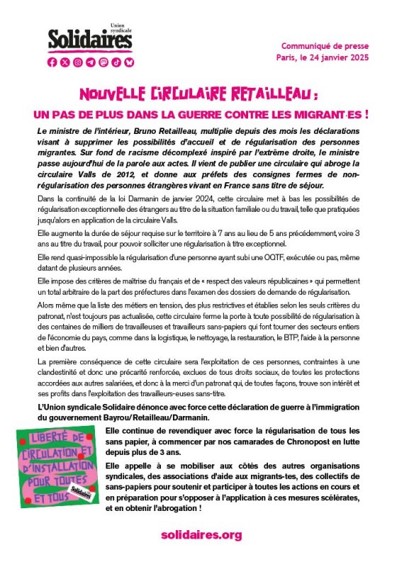 Nouvelle circulaire Retailleau : Un pas de plus dans la guerre contre les migrant-es ! !