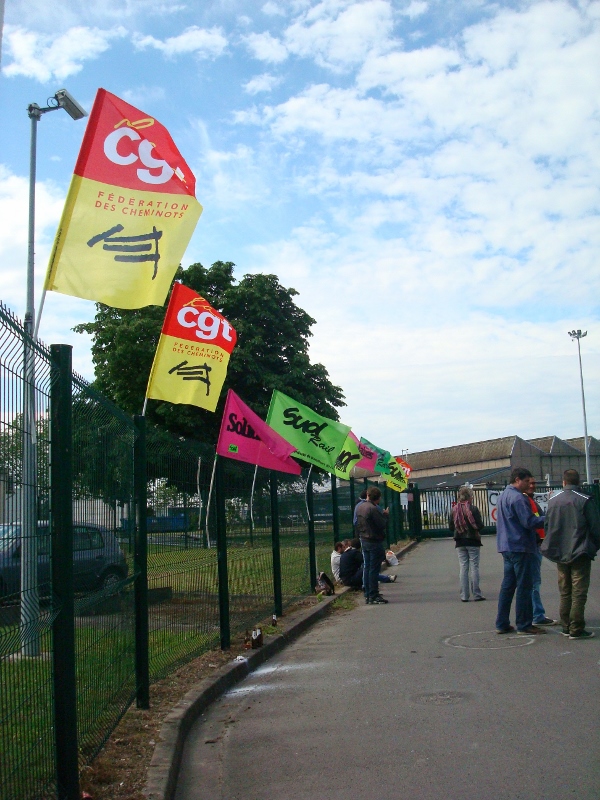 Piquet de grève des cheminots le 25 mai, au technicentre de Saint Pierre des Corps