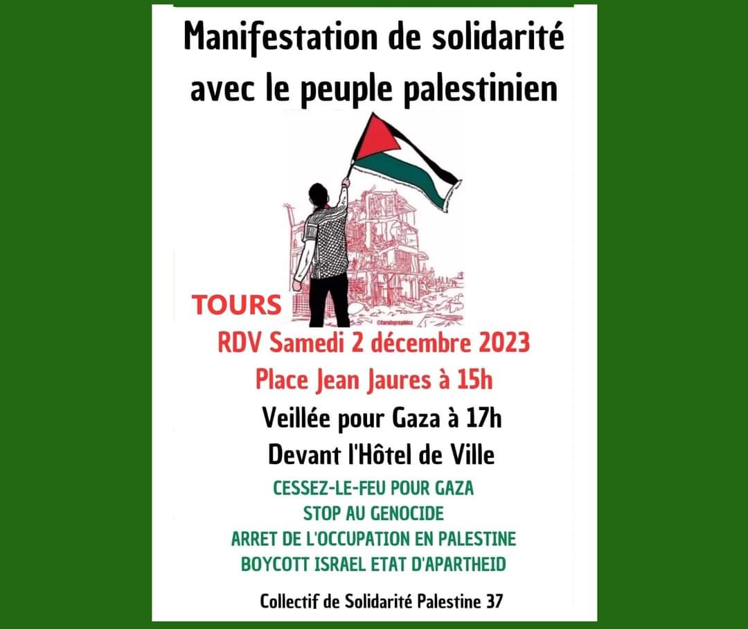 Prochaine manifestation de solidarité avec le peuple palestien samedi 2 décembre 15h place Jean Jaurès