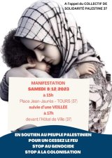 Prochaine manifestation de solidarité avec le peuple palestien samedi 9 décembre 15h place Jean Jaurès