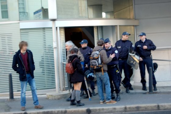 Une quarantaine de personnes est venue soutenir 3 camarades (dont 2 de SOLIDAIRES Etudiants-e-s) convoqués au commissariat suite à une plainte du MEDEF.