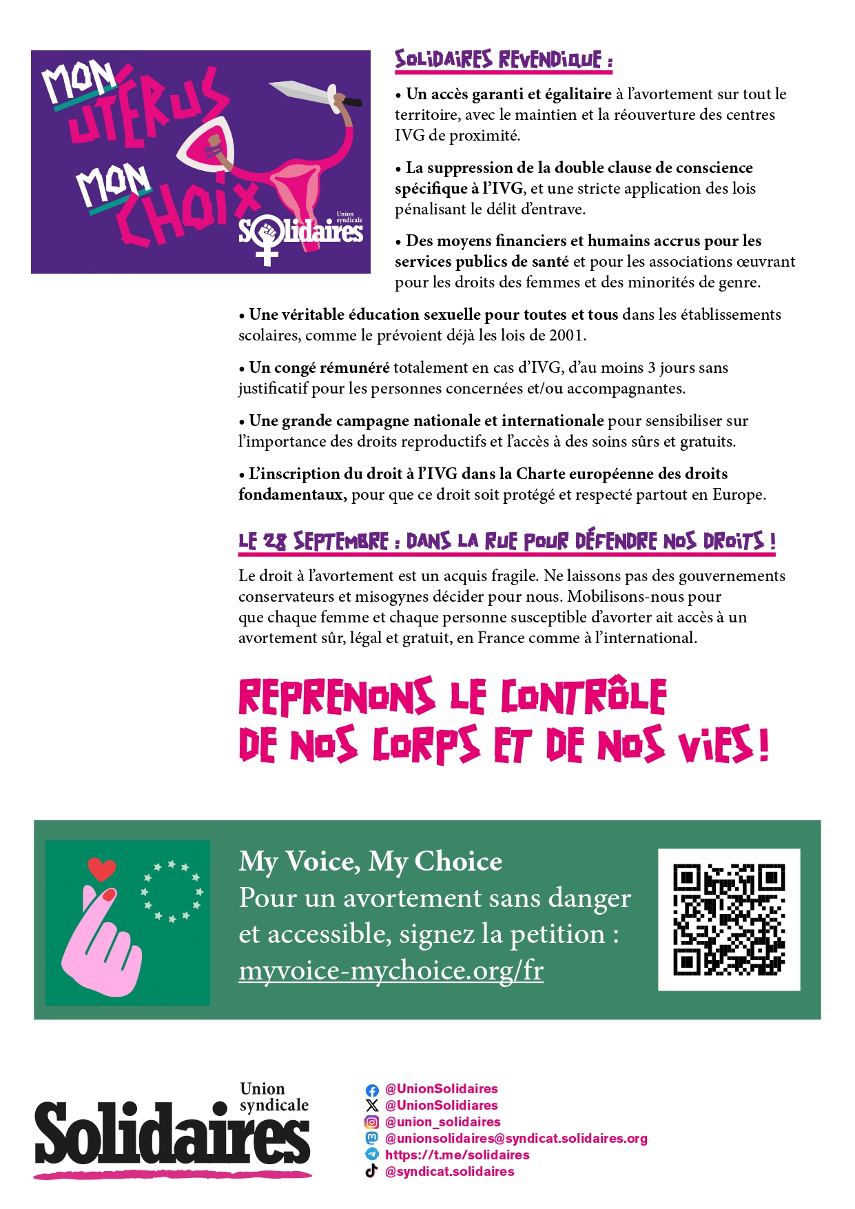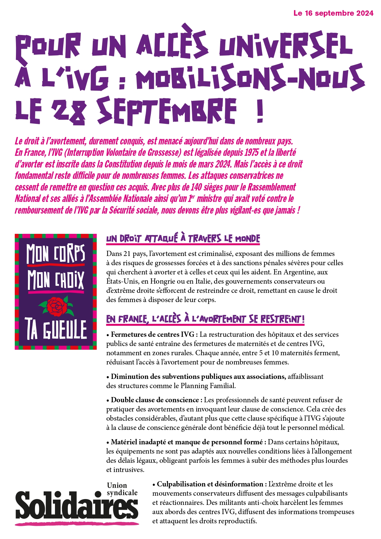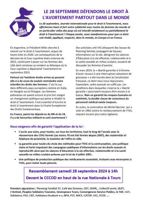 Rassemblement pour le droit à l’IVG le samedi 28 septembre à 14h devant le CCCOD Rue Nationale à Tours