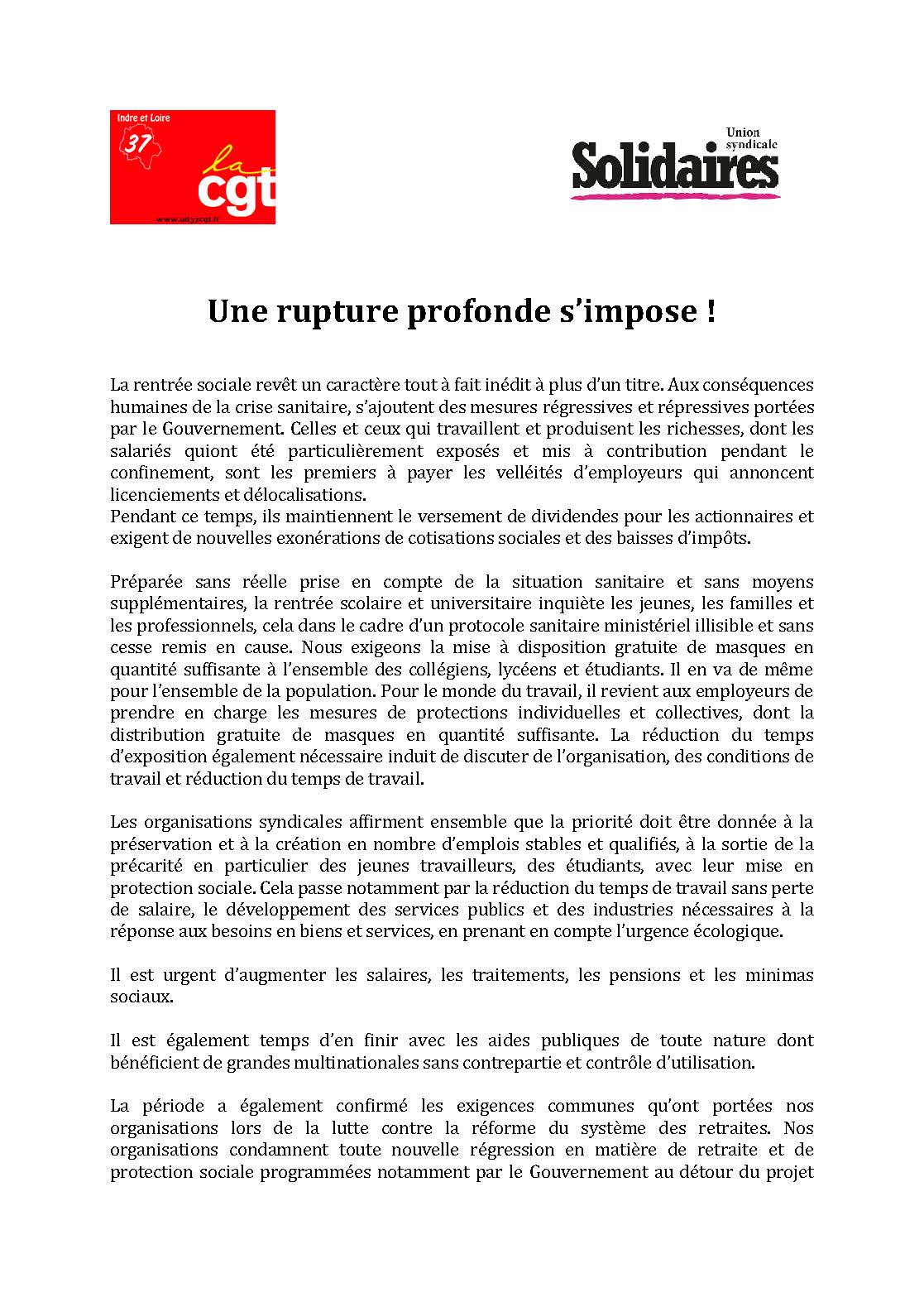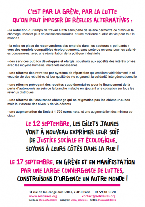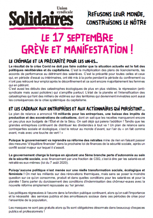 Tract unitaire local et tract solidaires ci-joint et ci-dessous