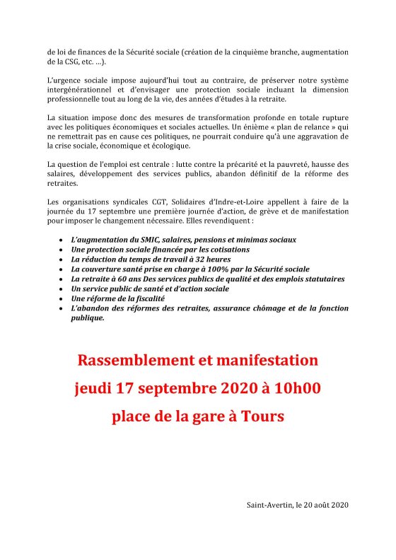 Refusons leur monde, construisons le notre ! Grève et manifestation le 17 septembre, rdv à 10h place de la gare à Tours