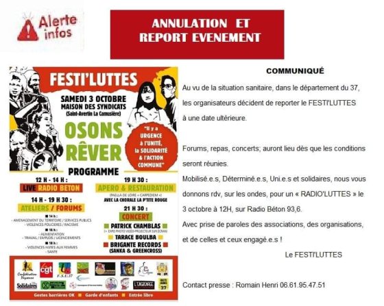 Report du festi’luttes à une date ultérieure