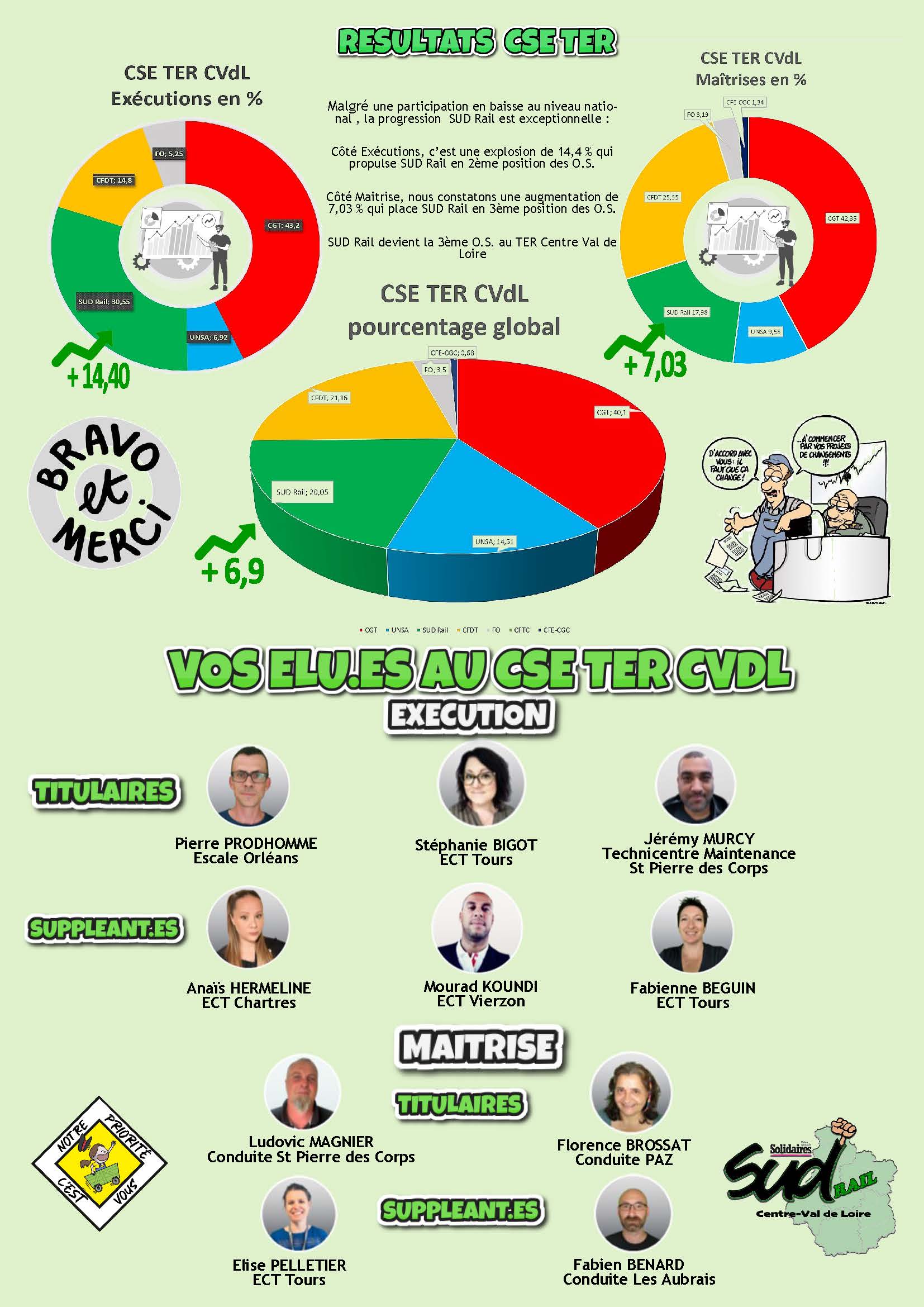 SUD Rail est 3ème OS au niveau du GPF avec 18,67% des voix, et 3ème OS au CSE TER CVDL avec 20,05% des voix.