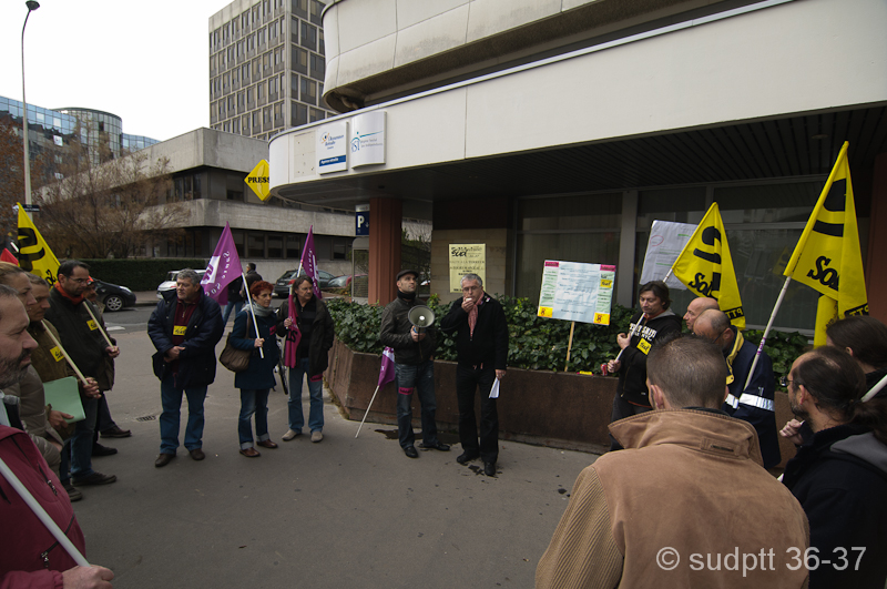Une présence très discrète de la CGT, même pas une dizaine de ses collègues de travail présents pour le soutenir, mais bonne mobilisation de SUD PTT et soutien de SOLIDAIRES 37 (avec des camarades de la Santé, du rail et de l’Education nationale).